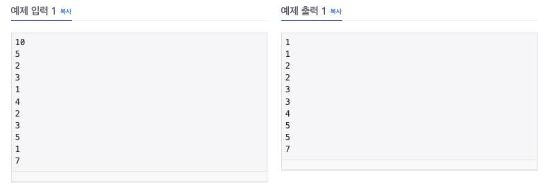 N개의 수가 주어졌을 때, 이를 오름차순으로 정렬하는 프로그램을 작성하시오.