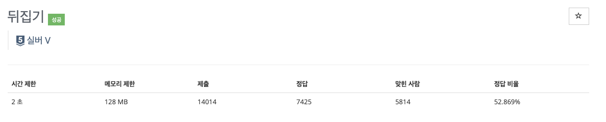 하지만, 처음부터 4번째 문자부터 5번째 문자까지 문자를 뒤집으면 한 번에 0000000이 되어서 1번 만에 모두 같은 숫자로 만들 수 있다.