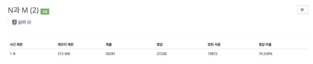 첫째 줄에 자연수 N과 M이 주어진다. (1 ≤ M ≤ N ≤ 8)