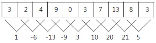 모든 연속적인 이틀간의 온도의 합은 아래와 같다.